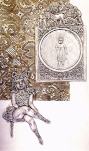 xilocollage, utilizando desechos de la sociedad industrial, ya que Ramona es también "desechada",