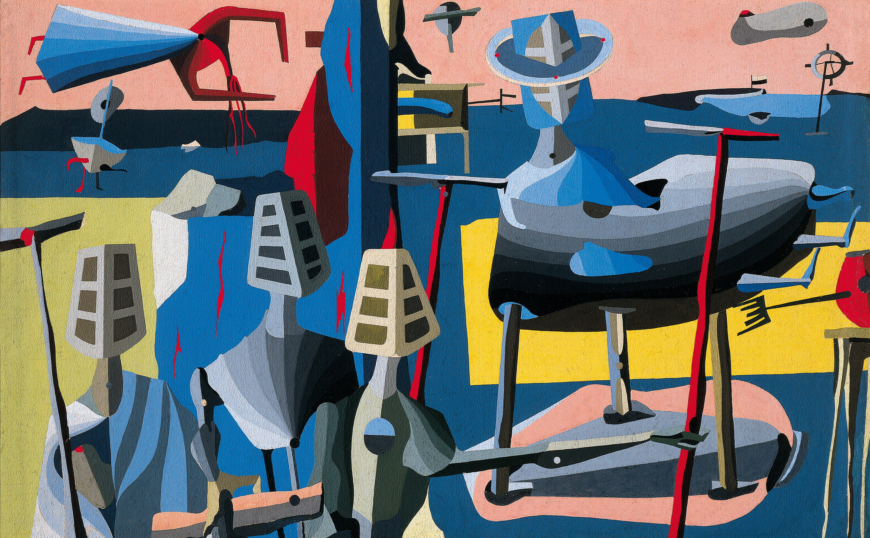 Cuando era adolescente, Juan Batlle Planas se cayó de la cubierta de un barco y, al querer subir a bordo, se clavó en la frente un hierro que sobresalía. Llevó la cicatriz toda su vida como una prueba de su contacto con el más allá. Según él, esa cicatriz le permitía tener agudas premoniciones sobre otros mundos, era un canal para las energías misteriosas que rigen el universo. Quizás por eso sus cuadros tienen seres de piernas y brazos duros como hierros, cuerpos geométricos, rostros piramidales, resultado de una fermentación fantástica de la materia. ¿De dónde han salido esos engendros? «Estas imágenes no me pertenecen, me han sido dictadas por ellos»; así equiparaba Juan Batlle Planas la misión del artista con la de un médium. Había nacido en Cataluña y llegado al país a los dos años. En Buenos Aires abrazó casi como una religión el automatismo predicado por los surrealistas y, cuando en 1944 exhibió sus primeras telas, anunció que lo hacía para ofrecer a la gente «encuadres a un mundo no mirado».