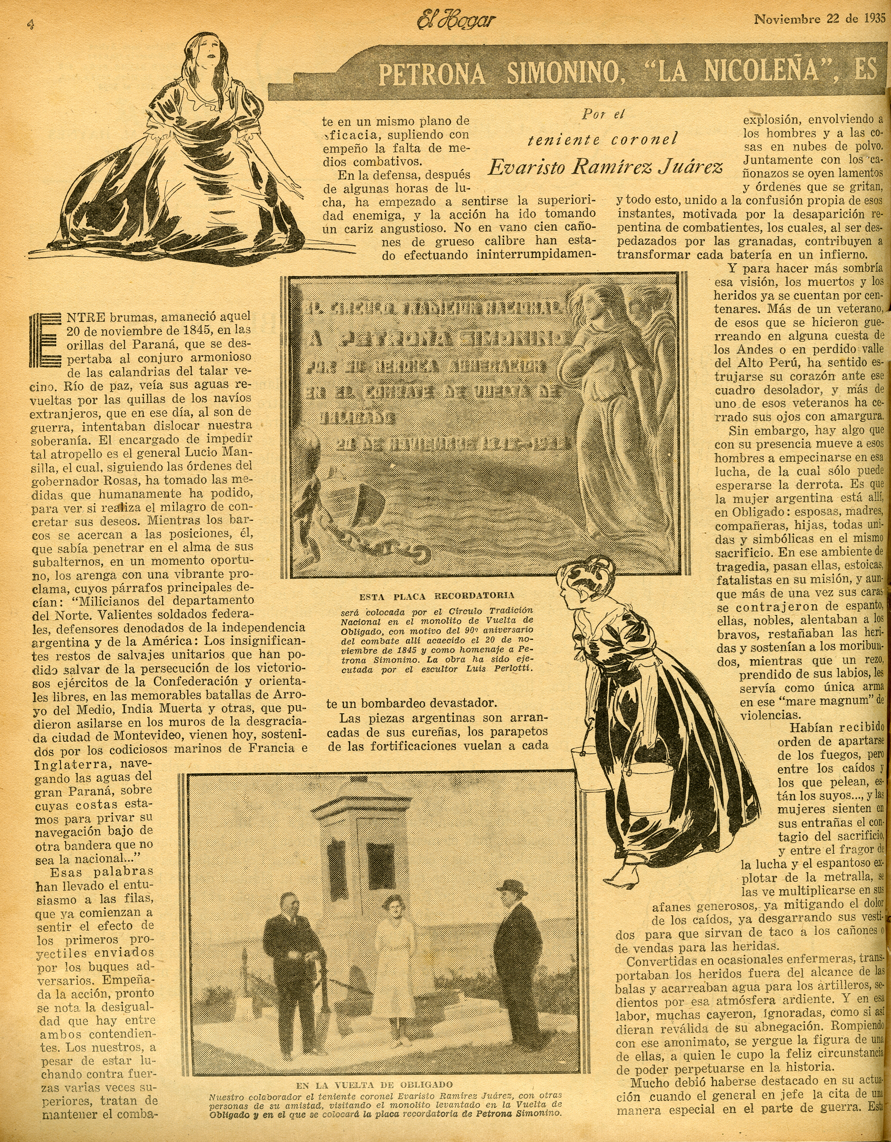 Compartimos dos abordajes posibles para trabajar la efeméride: una entrevista con Mariano Ramos, un arqueólogo que desde hace 17 años realiza excavaciones en la Vuelta de Obligado para encontrar «restos» que cuenten mejor lo qué sucedió en el campo de batalla y un acercamiento a la figura de Petrona Simonino, cuya historia, y el modo en que fue contada, permite reflexionar sobre las formas machistas de narrar el pasado.