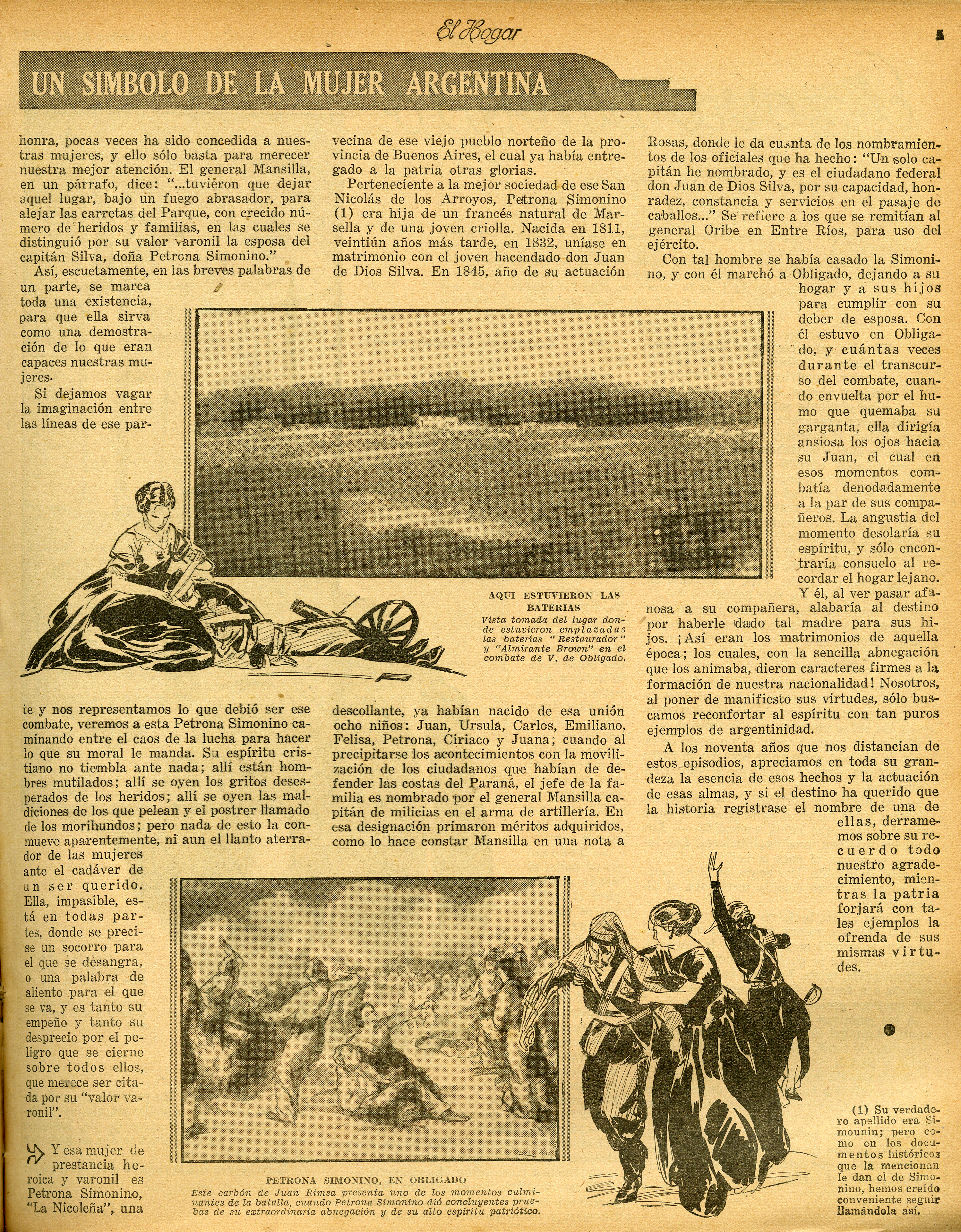 Uno de los primeros registros sobre Petrona Simonino salió publicado en la revista El Hogar en noviembre de 1935. La nota, firmada por Evaristo Ramirez Juárez, tiene la enorme virtud de rescatar del olvido la historia de Petrona, pero lo hace con algunos estereotipos vinculados al modo en que en esa época se concebía el lugar de la mujer.