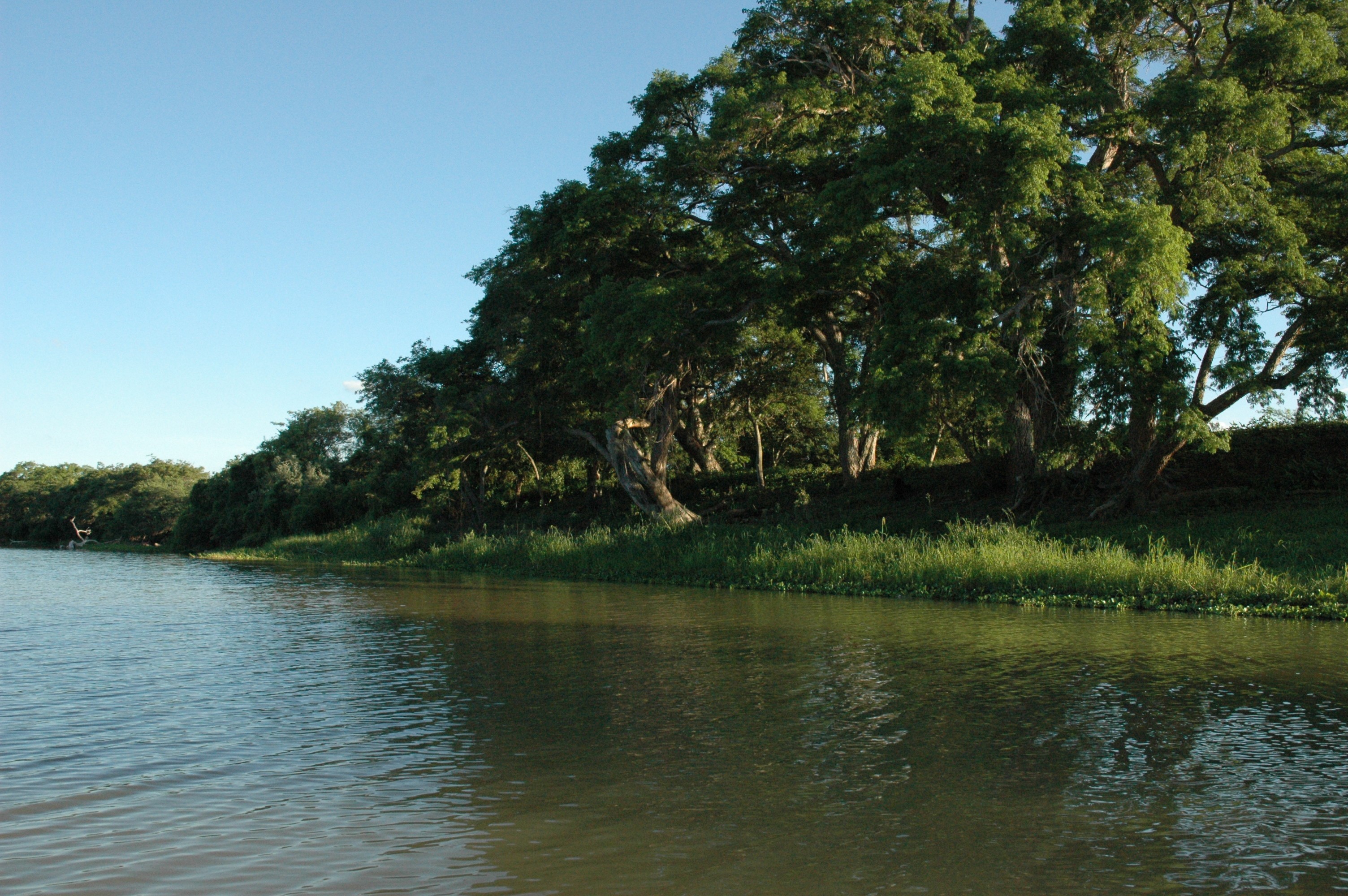Vista aérea del río Bermejo, provincia de Chaco, con la selva alrededor.