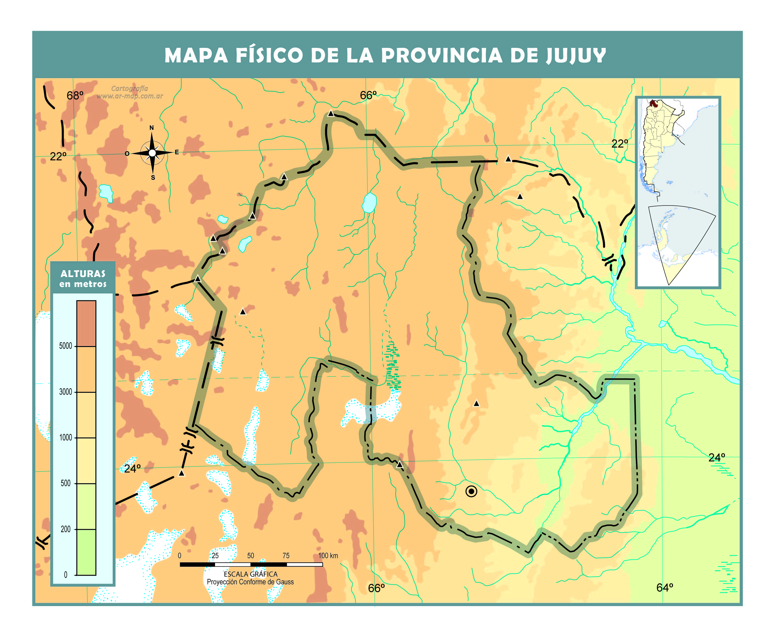 Galería de imágenes de mapas físicos con referencias de la Argentina, cada una de sus provincias y la Ciudad Autónoma de Buenos Aires.