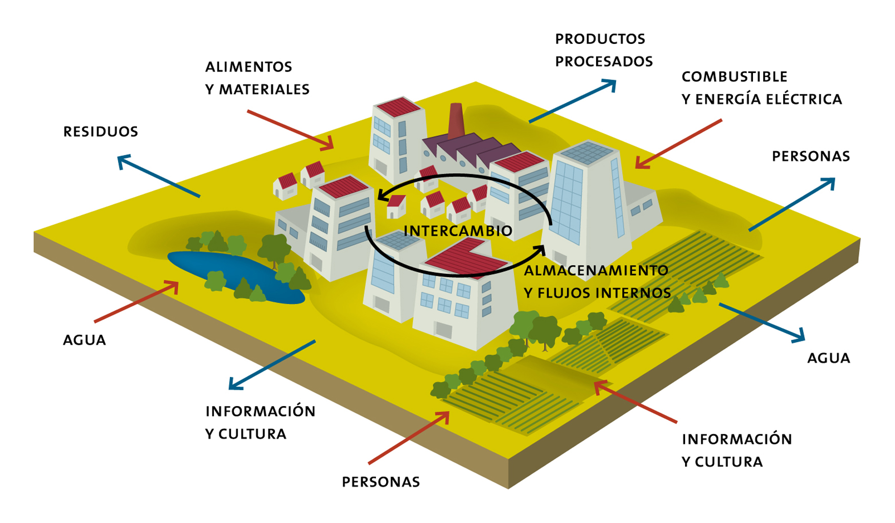 Esta lámina ilustra el esquema de un ecosistema urbano.