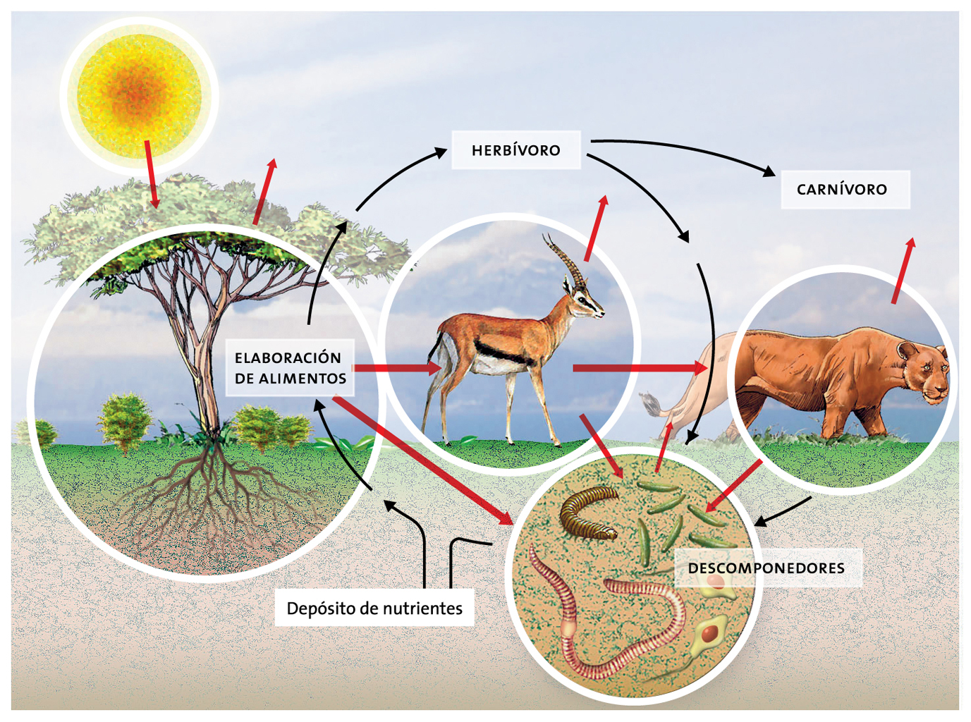 Esta infografía ilustra la circulación, materia y la transferencia de energía.