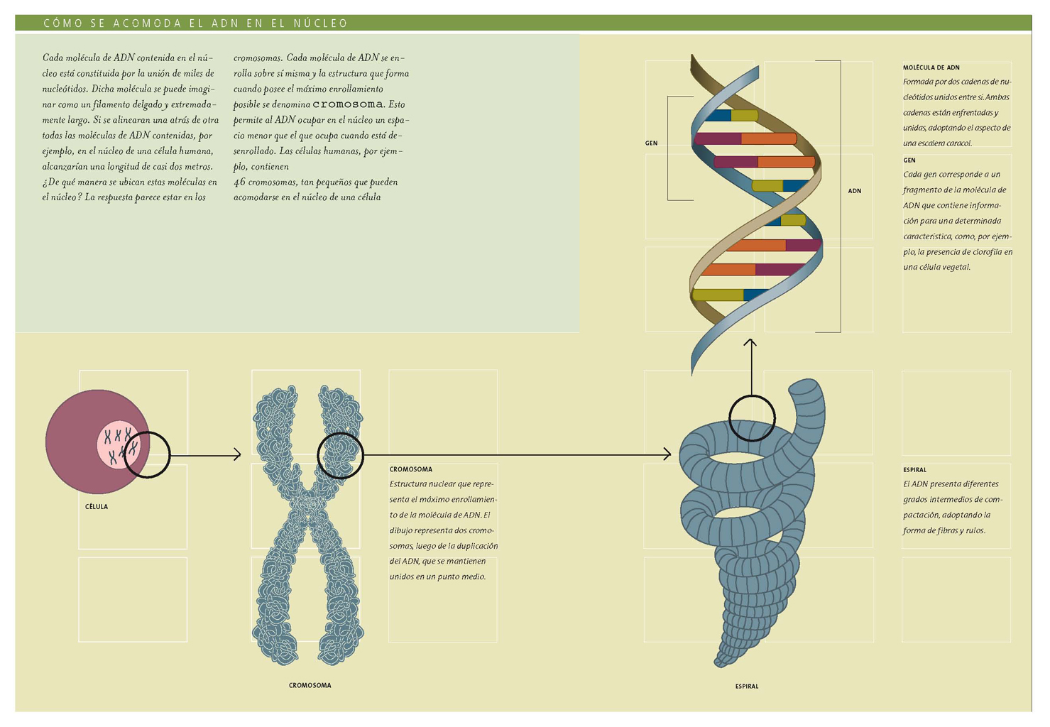 Esta lámina ilustra cómo el ADN se acomoda en el núcleo.